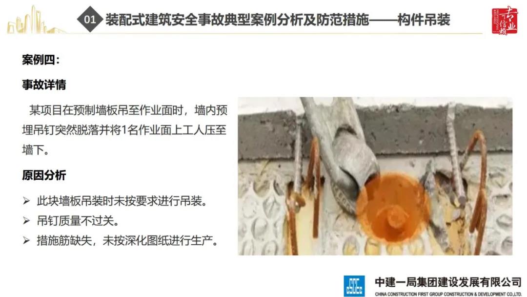 來(lái)源:裝配式建筑2020年8月28日,“2020全國(guó)重大工程安全管理創(chuàng)新與事故防范經(jīng)驗(yàn)交流會(huì)”在北京召開(kāi)。中建一局集團(tuán)建設(shè)發(fā)展有限公司副總經(jīng)理李浩做“裝配式建筑施工安全風(fēng)險(xiǎn)控制及事故防范措施”的報(bào)告。通過(guò)分析裝配式建筑安全事故典型案例,從深化設(shè)計(jì)、生產(chǎn)運(yùn)輸、施工前準(zhǔn)備、現(xiàn)場(chǎng)施工4個(gè)階段提出安全控制要點(diǎn);指出安全前期策劃和危險(xiǎn)源識(shí)別的重要性;最后,提出裝配式建筑安全控制建議及發(fā)展方向。